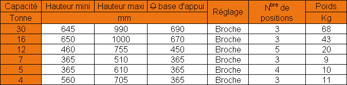 Capacités 4 – 5 – 7 – 12 – 16 – et 30 Tonnes.