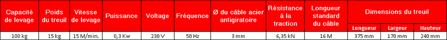 Treuil monophasé idéal pour travaux légers et bricolage.